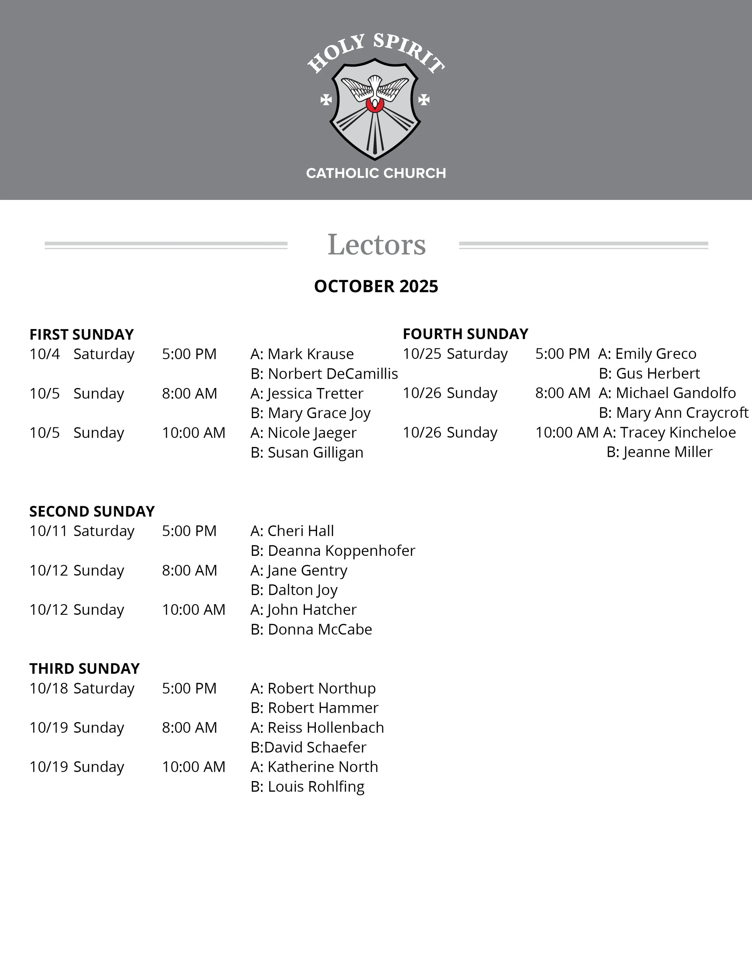Lector Schedule